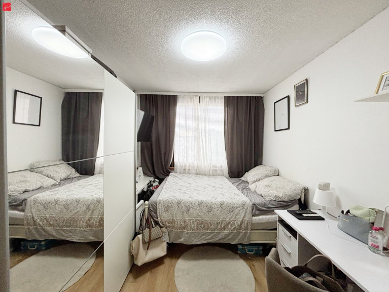 Das Wohnzimmer mit direkten Ausgang zur Loggia wurde geteilt und so ist das vierte Zimmer entstanden. Dieses kann jedoch problemlos wieder rückgebaut werden. In einem der Zimmer befindet sich zudem ein Schrankraum mit zusätzlichem Stauraum.