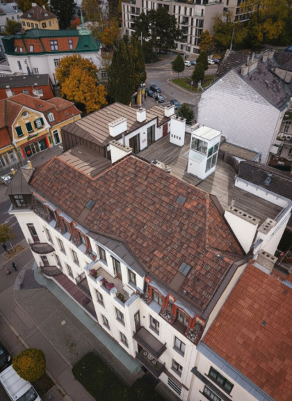 Der prachtvolle, neu renovierte Stilaltbau befindet sich in einer der begehrtesten Lagen Döblings – inmitten eines Grätzels mit exklusivem Flair. Das gesamte Haus wurde geschmackvoll saniert: sämtliche Steigleitungen sowie der Lift wurden bis ins Dachgeschoss neu errichtet. Der unverwechselbare Charakter des historischen Gebäudes blieb dabei erhalten – das repräsentative Entrée mit seiner gegliederten Stuckfassade und dem eleganten Stiegenhaus vermittelt sofort ein Gefühl von Stil und Großzügigkeit.