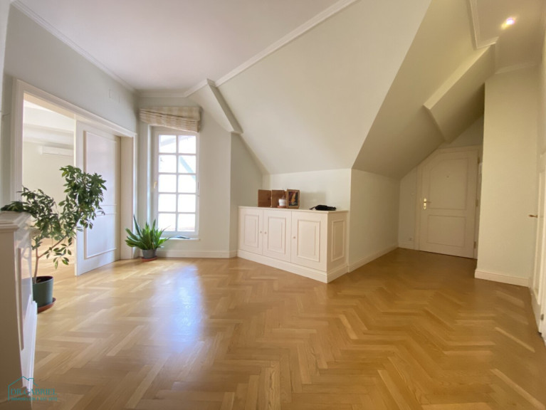 FIRST DISTRICT: ELEGANT ROOFTOP APARTMENT WITH TERRACE, TWO BEDROOMS, ONE BATHROOM, A/C IN BEAUTIFUL HISTORIC ENSEMBLE
