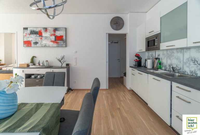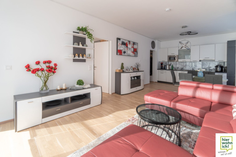 Die Echtholz-Parkettböden sorgen für eine hochwertige Optik, ebenso runden die Fußbodenheizung, die Sicherheitstüre & Videogegensprechanlage die moderne Ausstattung ab.
